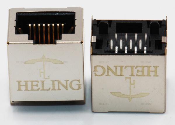 Gold Plating Contact Terminal 180 SMT RJ45 Connector R / A 50U" Single Port Shielded Images |