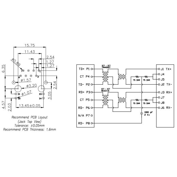 | Overview: | RJ45 1x1 8P8C Right Angle RJ45 Connector with Integrated Magnetics | ||||||
